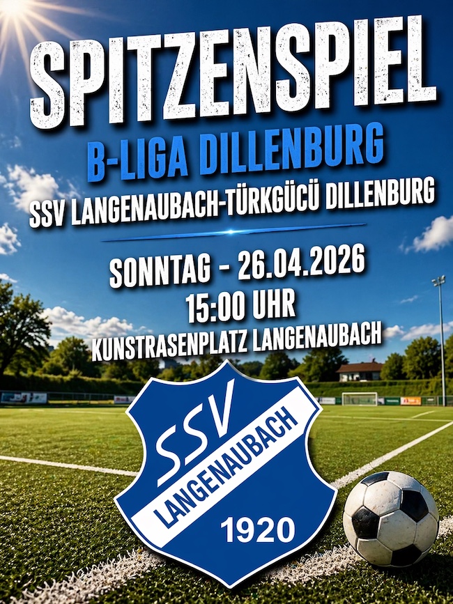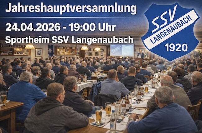 Der SSV 1920 Langenaubach lädt alle Mitglieder herzlich zur diesjährigen Jahreshauptversammlung ein. Die Versammlung findet am Freitag, den 24. April 2026, um 19:00 Uhr im Sportheim statt. Neben den Berichten des Vorstandes und der einzelnen Abteilungen stehen in diesem Jahr auch wieder Ergänzungswahlen des Vorstandes auf der Tagesordnung. Der Vorstand freut sich auf eine rege Teilnahme.